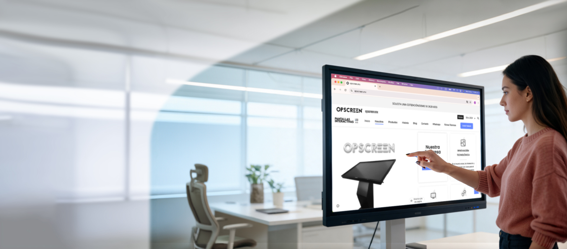 OPSCREEN interactive displays are technological solutions designed to improve communication, interaction, and user experience in commercial, educational, and corporate spaces. They allow for the display of dynamic content, touch interaction, and the automation of customer service or presentation processes.